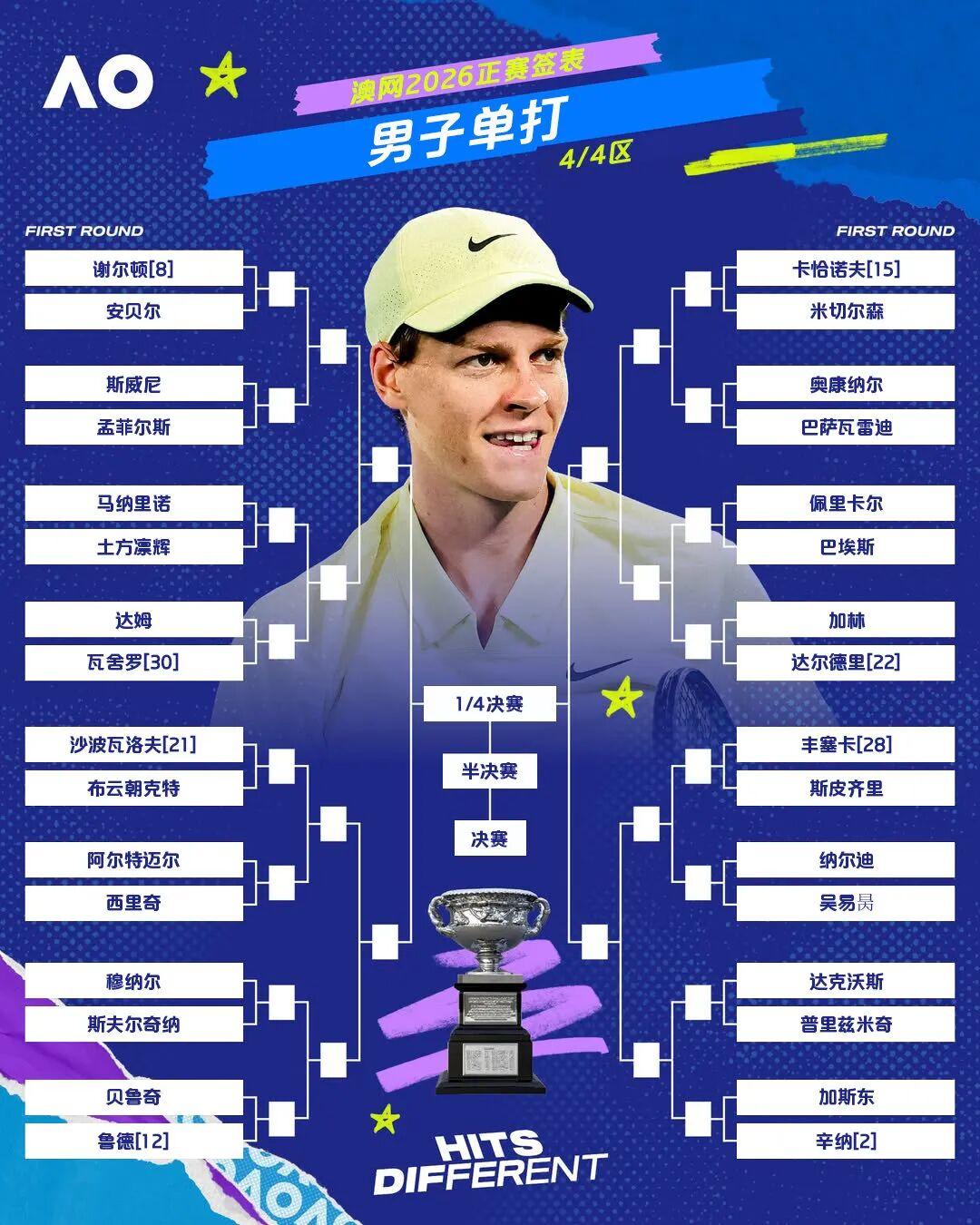 男单:小徳辛纳同半区;中国男网齐出击